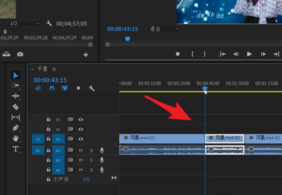 把需要替换的部分剪切出来,把时间线拖动到这段视频的最前端。