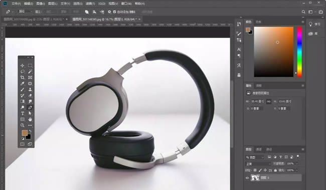 我们选择这样一张图片,目标就是把图中的耳机抠出来,大家看到这张图就可以在大脑里想一想,应该运用什么样的方法,肯定我们知道不能用魔棒工具吧!所以先用钢笔工具抠图看看!
