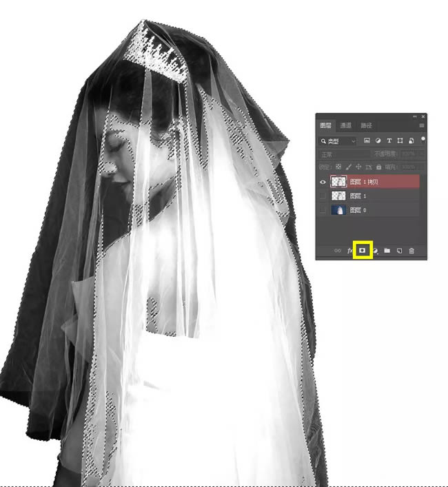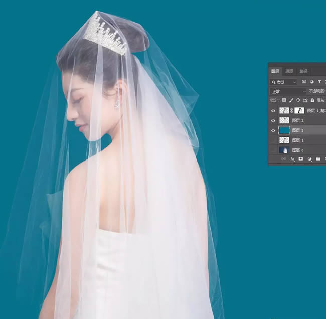 我们可以看到复制出来的人物图层很明显婚纱不是透明的,所以接下来就算重点的教程来啦,