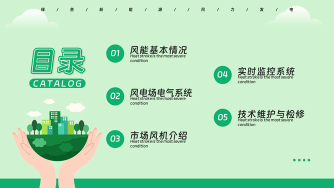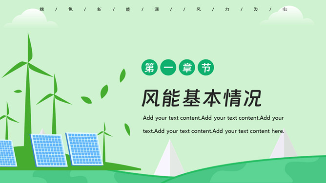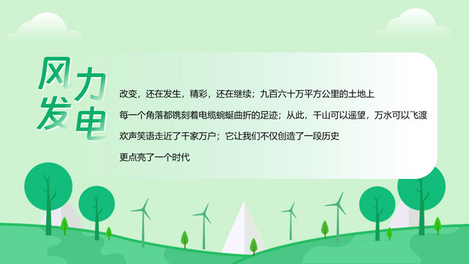 风力发电新能源PPT模板。改变,还在发生,精彩,还在继续;九百六十万平方公里的土地上每一个角落都镌刻着电缆蜿蜒曲折的足迹。