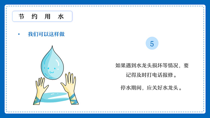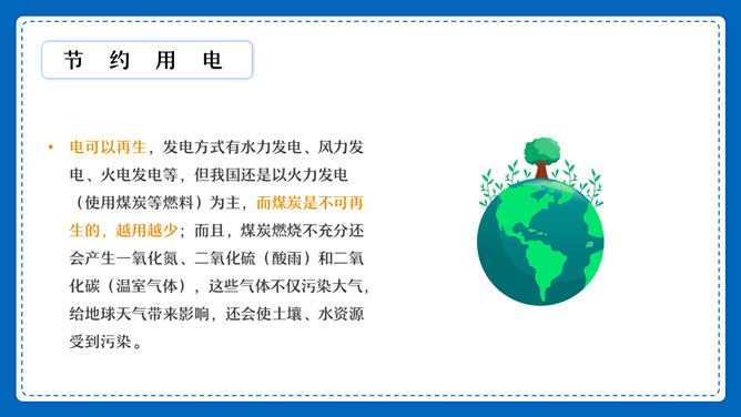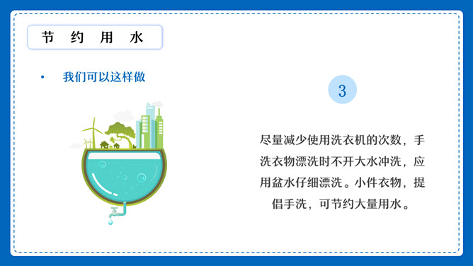 节约用水用电班会PPT模板。水是生命的源,电是生命的光环。我们生活在这颗蔚蓝色星球上却常常不懂得珍惜,灯火通明,任水流淌,我们享受着地球给予的一切,却忘了地球也需要被我们珍惜!
