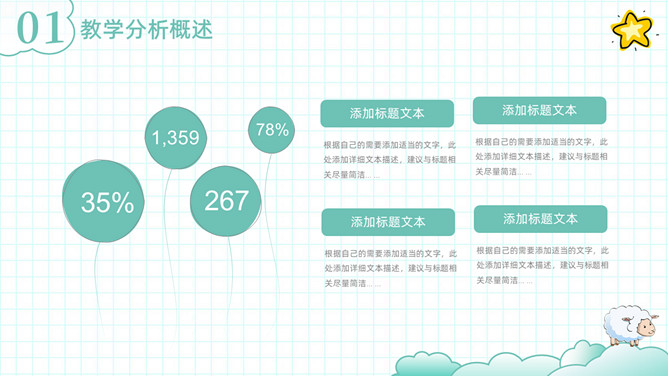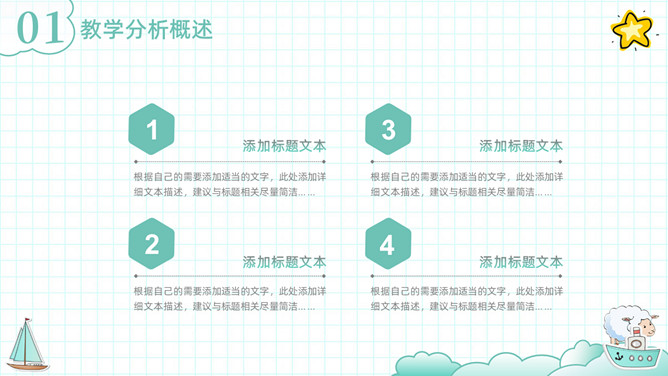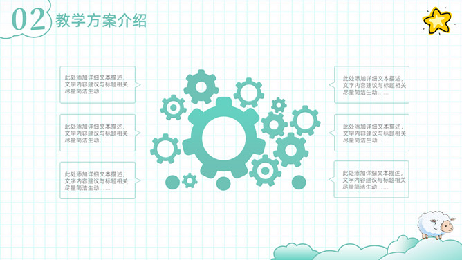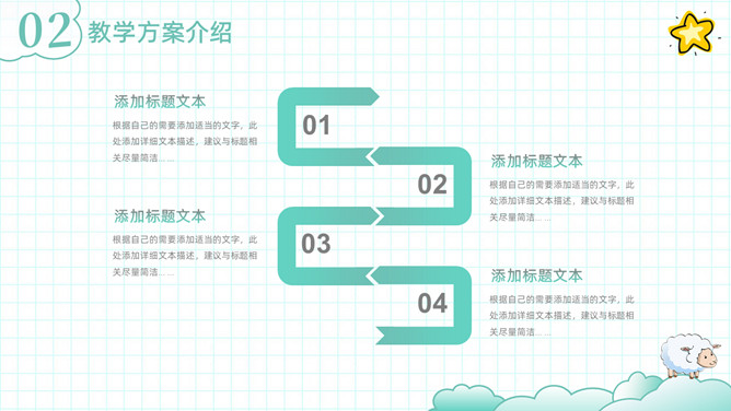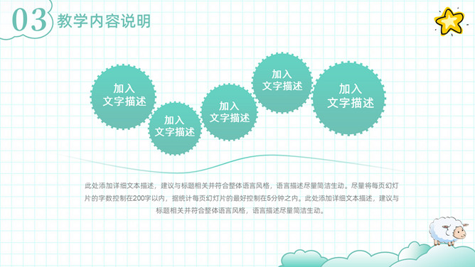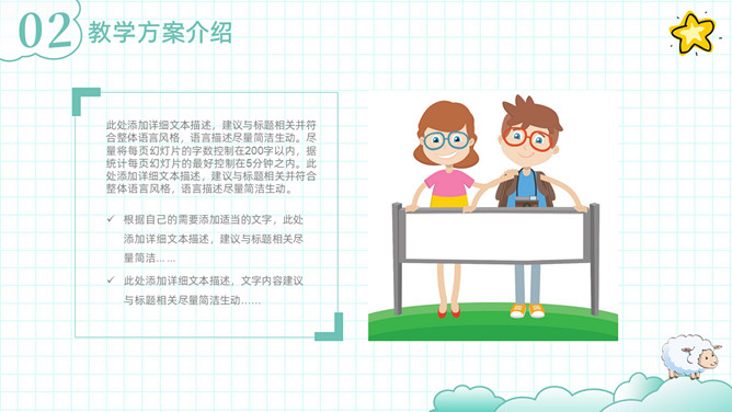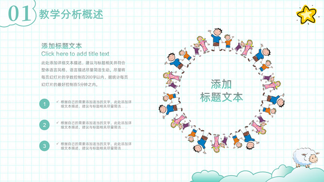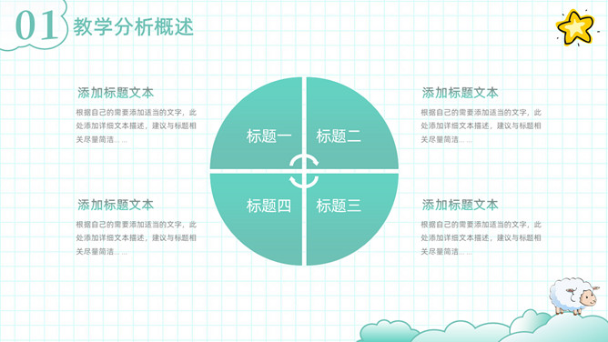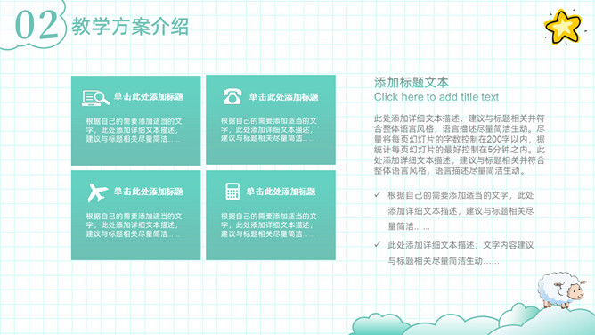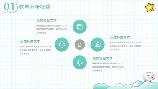 可爱清新卡通动物教学设计PPT模板。一套教师教学设计模板,清新淡绿色配色,可爱卡通小动物装饰。