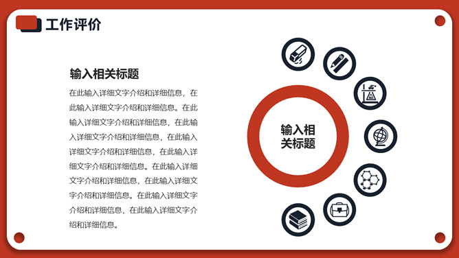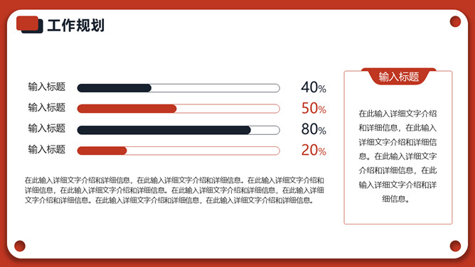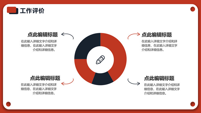 红色年终个人述职报告PPT模板。一套个人年终述职报告模板,红色主色调,经典红黑配色,简约设计,动态播放。