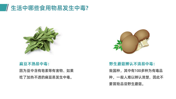 内容包括食物中毒是如何引起的?生活中哪些食用物易发生中毒?食物中毒的症状和预防措施、发现食物中毒該怎么办?生活中哪些食品不能搭配 。