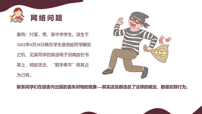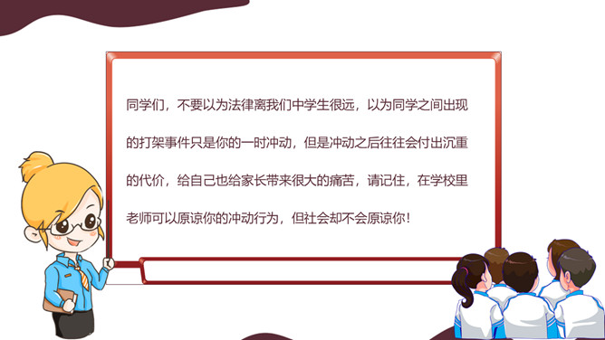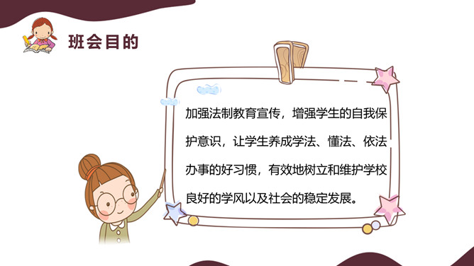 法制让我们安全的成长班会PPT模板。加强法制教育宣传,增强学生的自我保护意识,让学生养成学法、懂法、依法办事的好习惯,有效地树立和维护学校良好的学风以及社会的稳定发展。