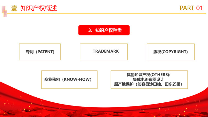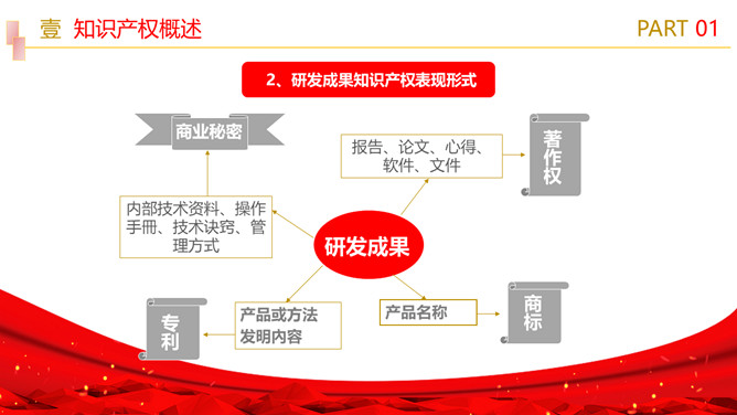 公民或法人等主体依据法律的规定,对其从事智力创作或创新活动所产生的知识产品所享有的专有权利,又称为“智力成果权”、“无形财产权”,主要包括发明专利、商标以及工业品外观设计等方面组成的工业产权和自然科学、社会科学以及文学、音乐、戏剧、绘画、雕塑、摄影和电影摄影等方面的作品组成的版权(著作权)两部分。