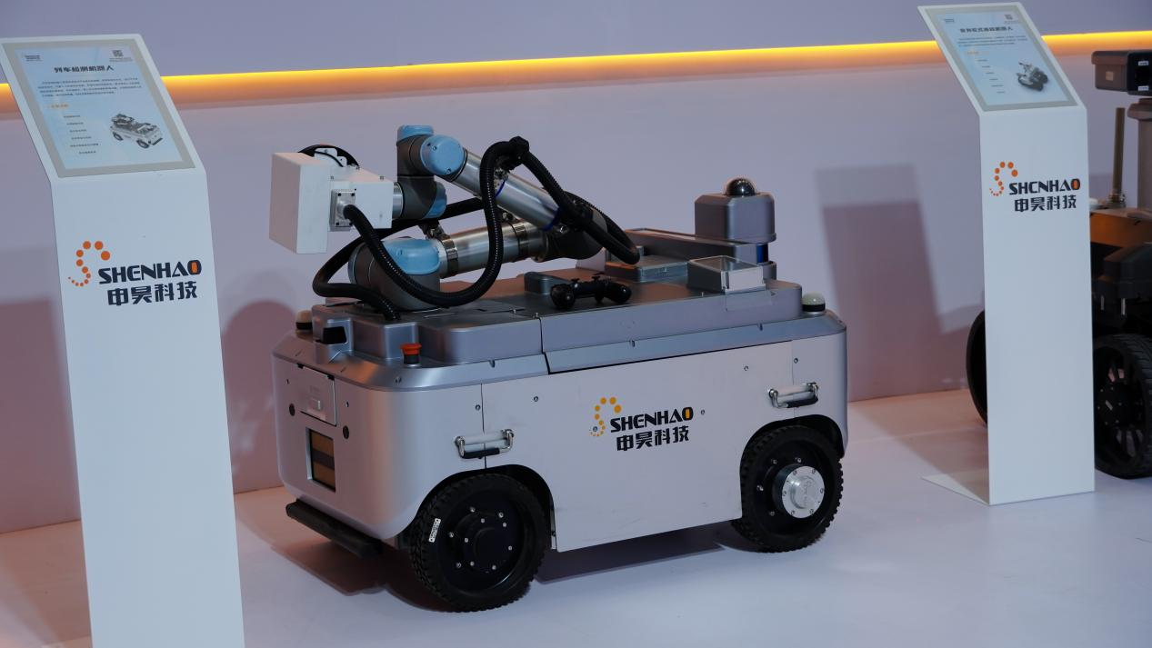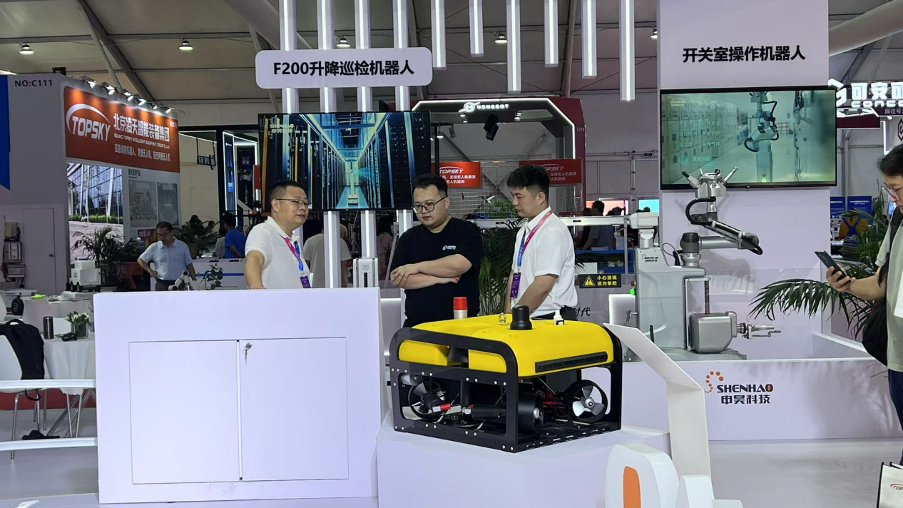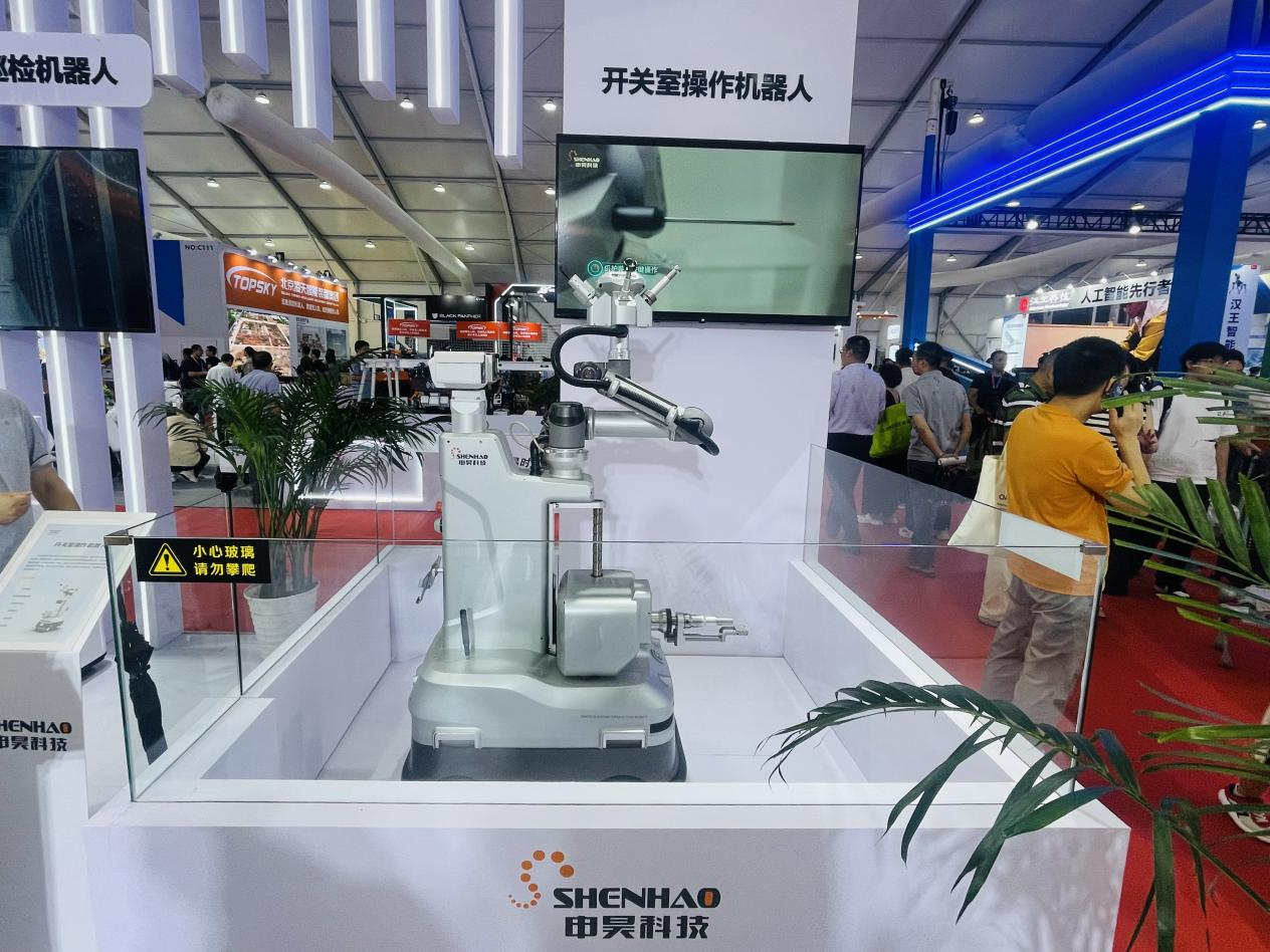 展区现场,两款配备六轴机械臂的机器人正在进行动态演示,灵巧精准的动作犹如"特种兵"展示精湛技艺。据介绍,这两款机械臂机器人已在电力电网和轨道交通行业发挥重要作用。