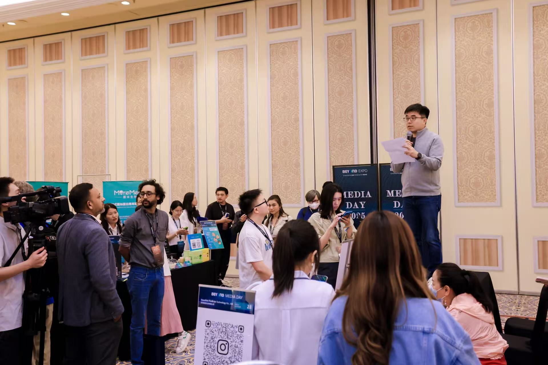开幕式圆满落幕后,BEYOND Expo 首次迎来了媒体日活动。作为展会前夕的重头戏,这是一场专属于 KOL、媒体与展商的封闭式展览活动,通过媒体亲身体验产品、KOL 打卡、预热内容发布等多种形式,为参展企业在正式开幕前精心构建了一个全球化的品牌曝光生态体系。本次媒体日吸引了中央广播电视总台,CNN,Bloomberg,Time Magazine,新华社,中国日报,SMG,第一财经,凤凰卫视,CAIXIN GLOBAL,凤凰科技,资本杂志,TechNode 动点科技,TNGlobal等100 家亚洲及全球顶级商业与科技媒体以及众多全球知名 KOL 的参与。