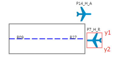 三种情况的判断主要依靠上面这个方法,然后再有区分,飞机飞入跑道,首先是坐标矩形会与跑道矩形相交,然后y1,y2在跑道的y轴范围之内即可。