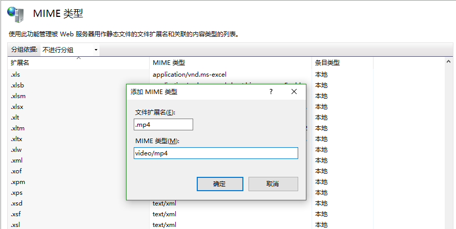 默认的iis MIME设置是没有增加mp4类型的,会出现本地播放没有问题,但是到了服务器上就出404错误。这需要在iis中设置MIME: