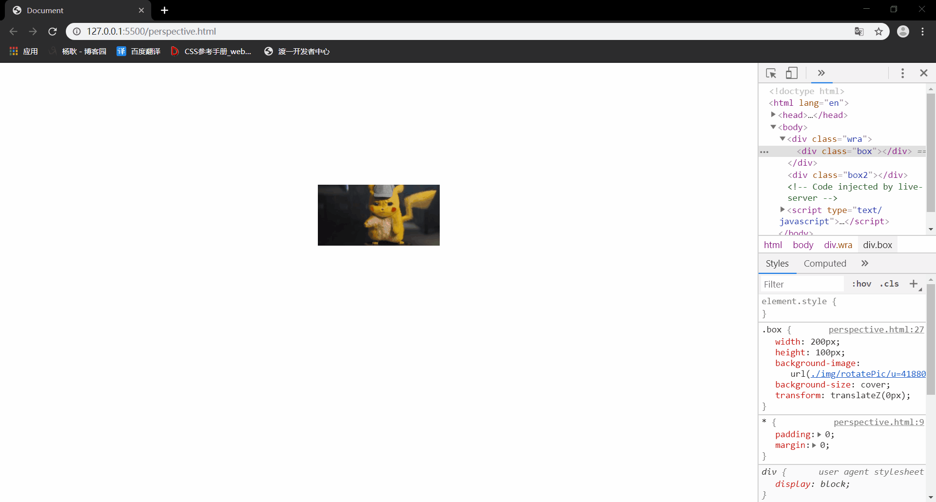 好了,最后补充一点,这个perspective 属性呢,要放在父级身上。然后还有一个属性perspective-origin,这个属性也是设置在父级身上。