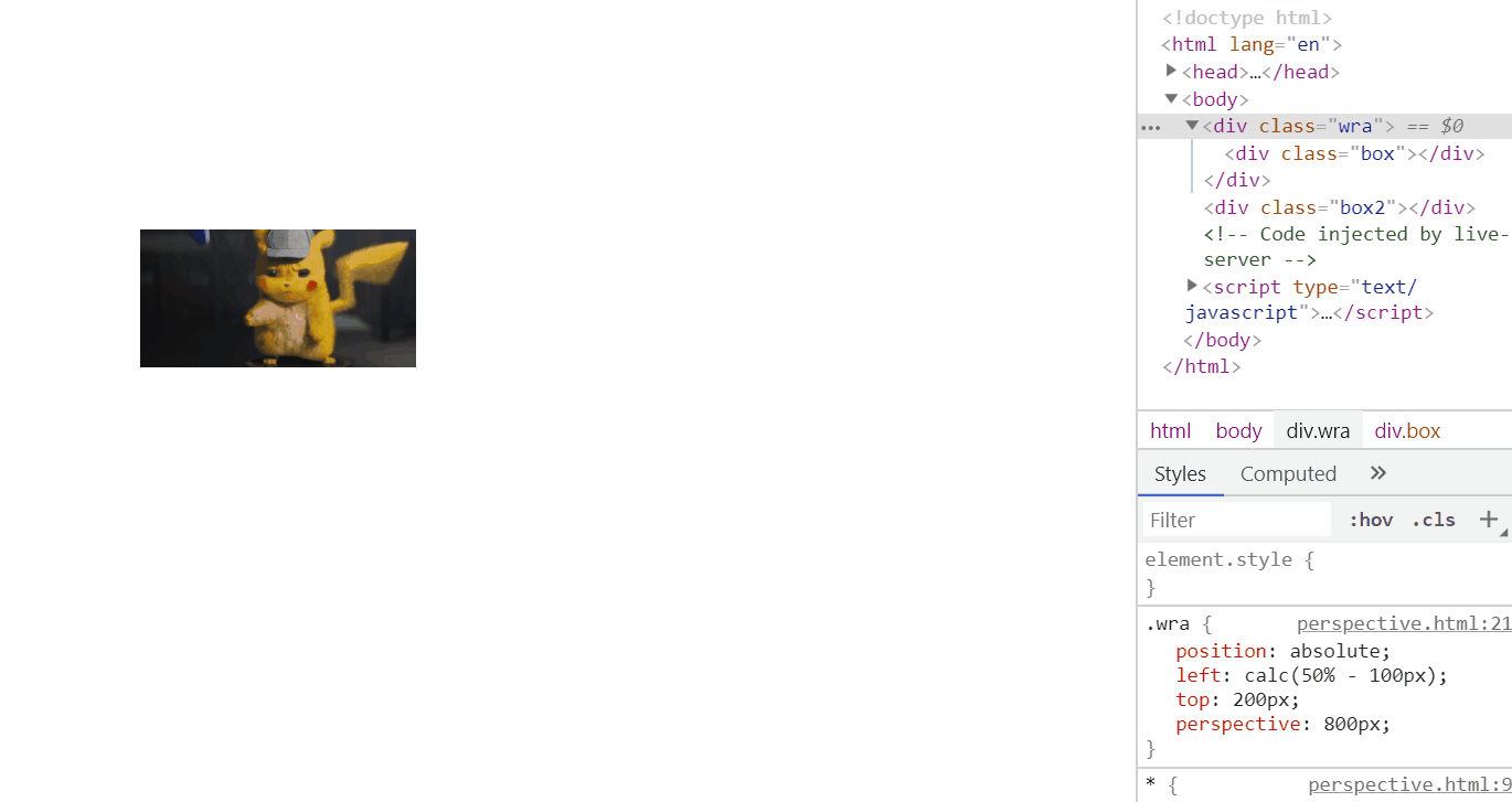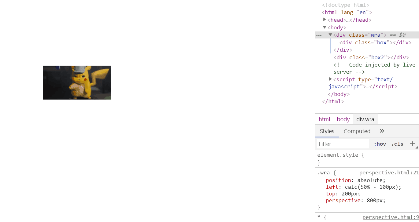 先来看看, 加了perspective 和 没有加是什么区别, 第一个小方块,是有加的效果,能明显的看到空间感了有没有, 感觉他是真的像在旋转, 而第二个呢,像是在伸缩。