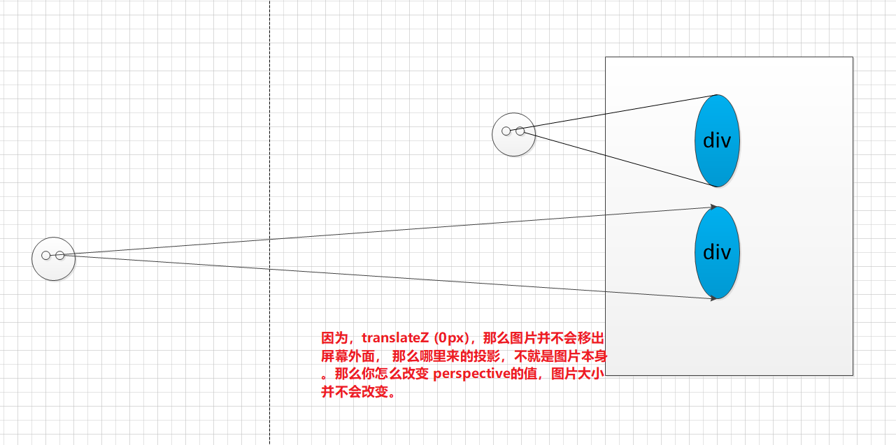 第三个情况,translateZ 为0的时候,为什么移动我们perspective 的值,图片的大小没有改变呢?