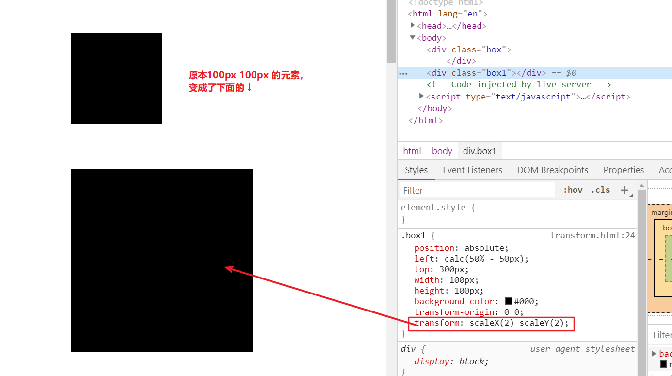 看了上面的图,你可能会觉得,好像是100px 变成了200px 但是实际上,并不是。变的不是 元素的 宽高。