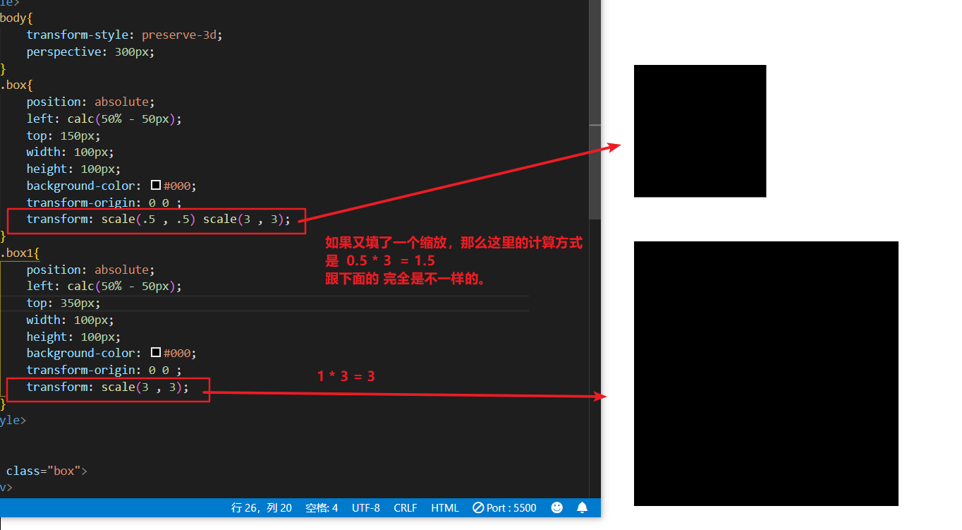 本章有个很冷门的知识点 → scale 和 rotate 一起使用