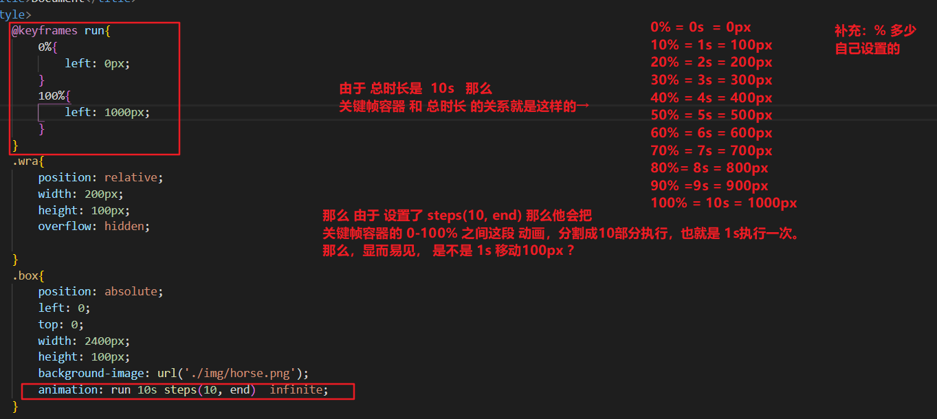有些人,可能不是很理解 关键帧容器,和 steps 之间的关系,没关系,看下面的图解