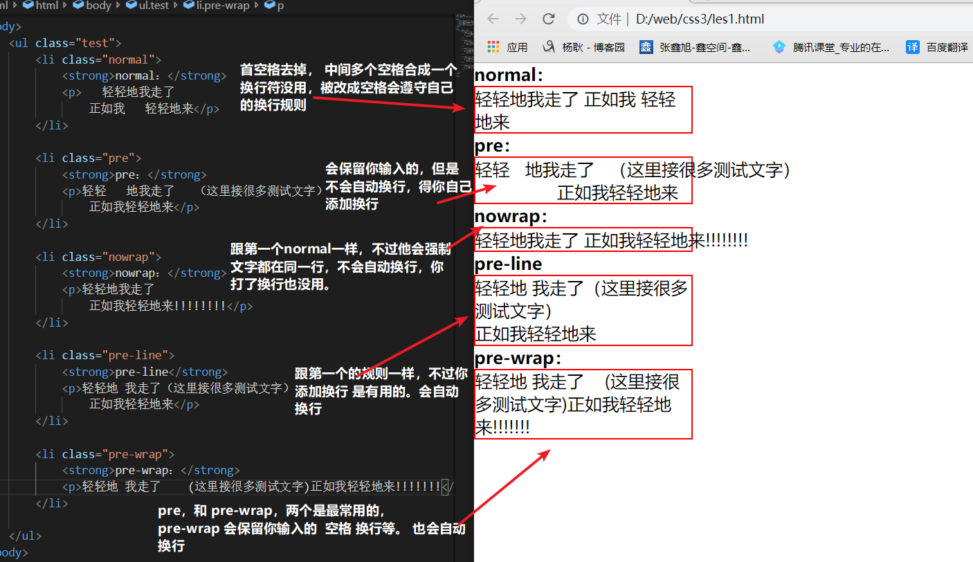 normal:默认值。首空格会被去掉,空格在文字的中间,多个会被合成一个,是否换行有换行规则决定。