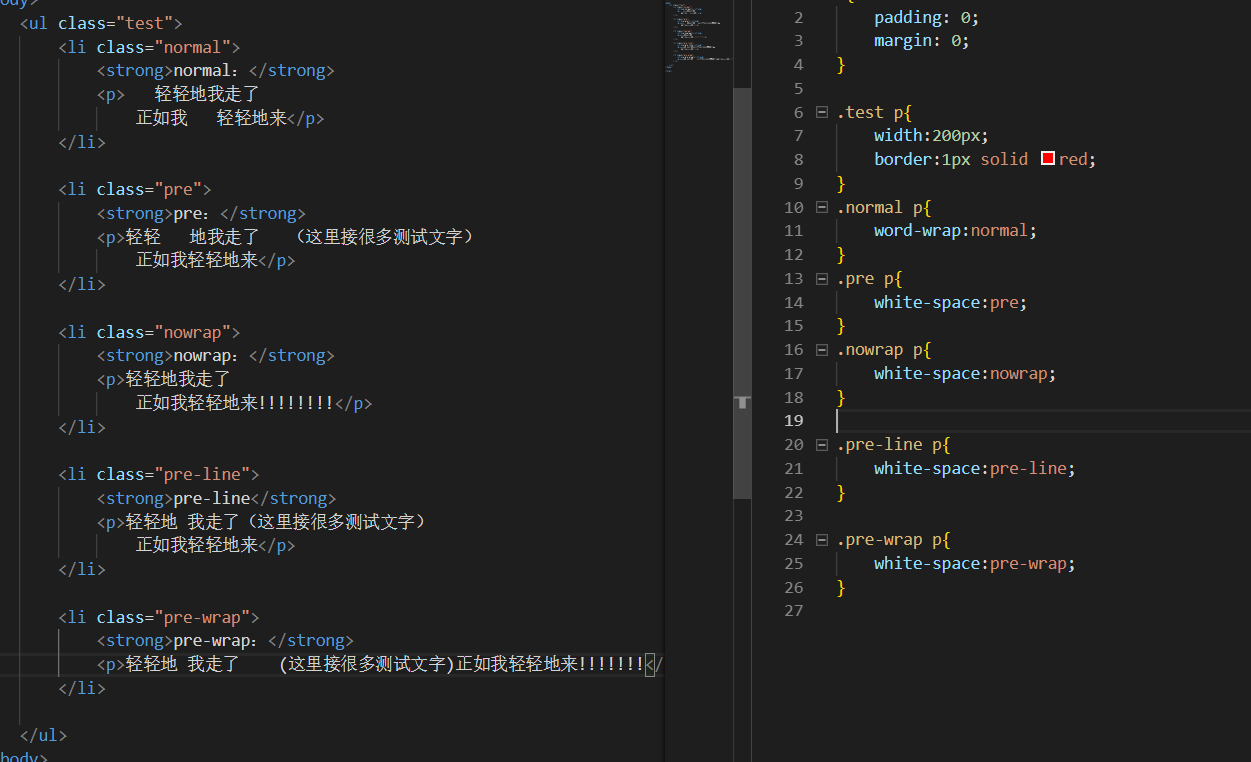 pre-wrap:跟pre 一样,不同的是,文字超过边界,会自动换行。