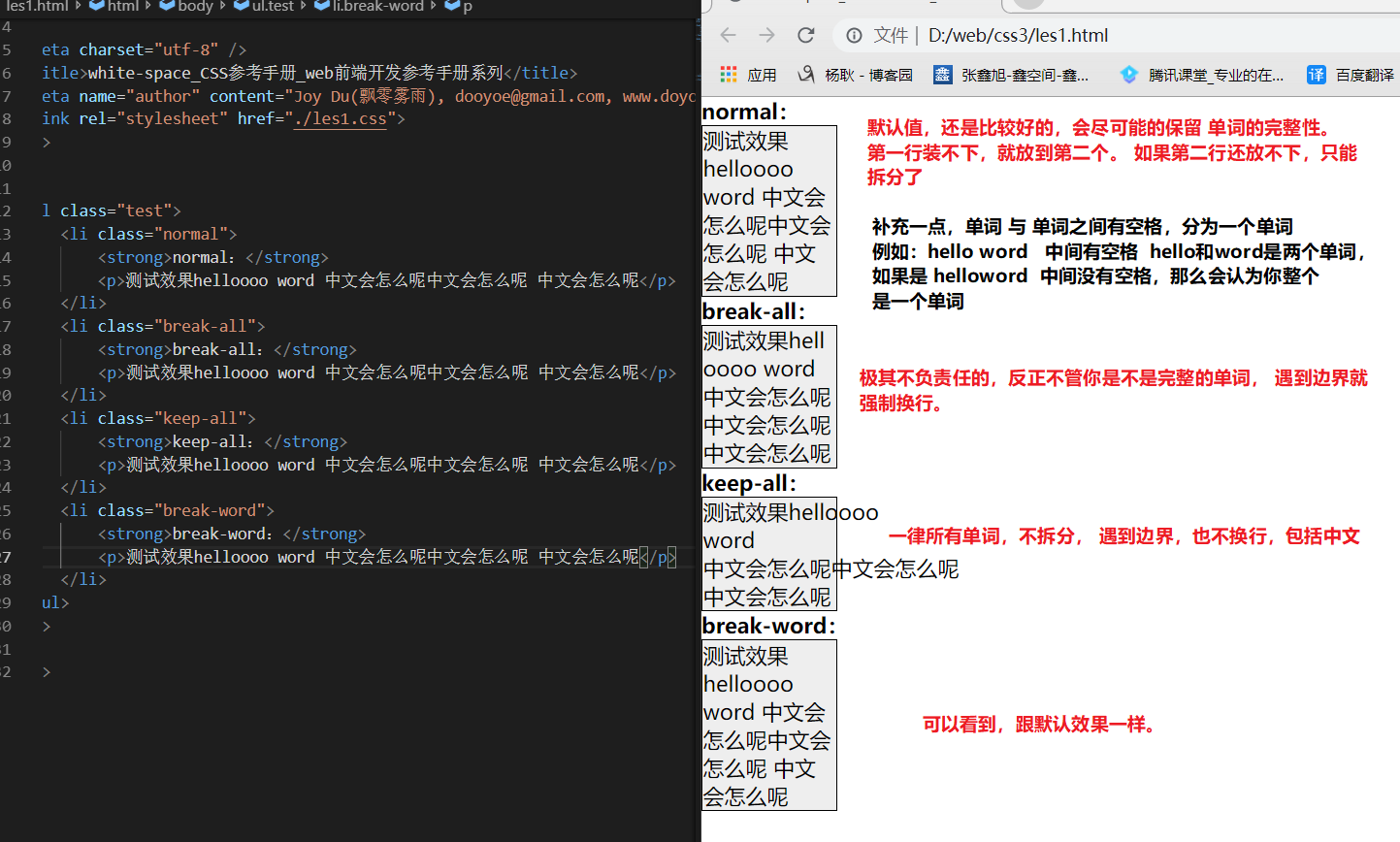 word-wrap, overflow-wrap:normal | break-word | break-spaces (break-spaces) 不做讲解, 不兼容