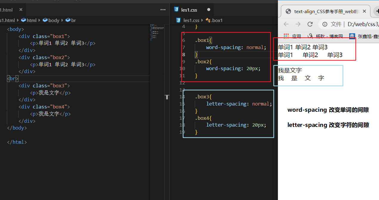 前者调节 单词之间的间隙,后者调节字符之间的间隙
