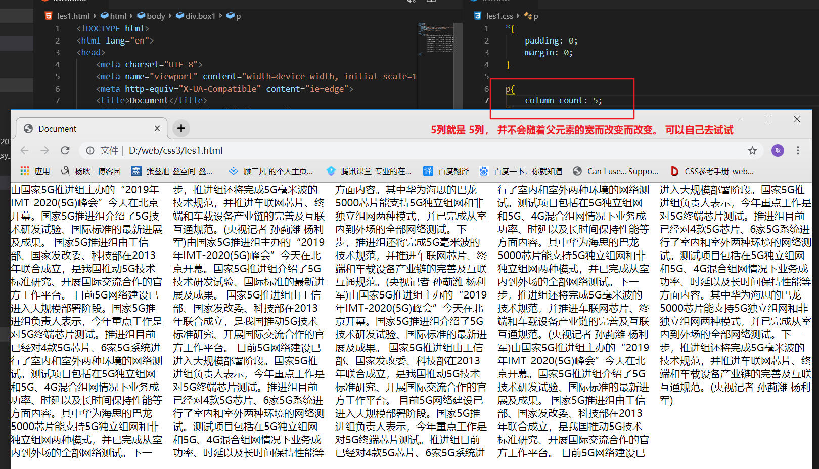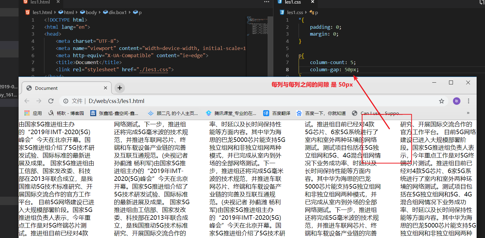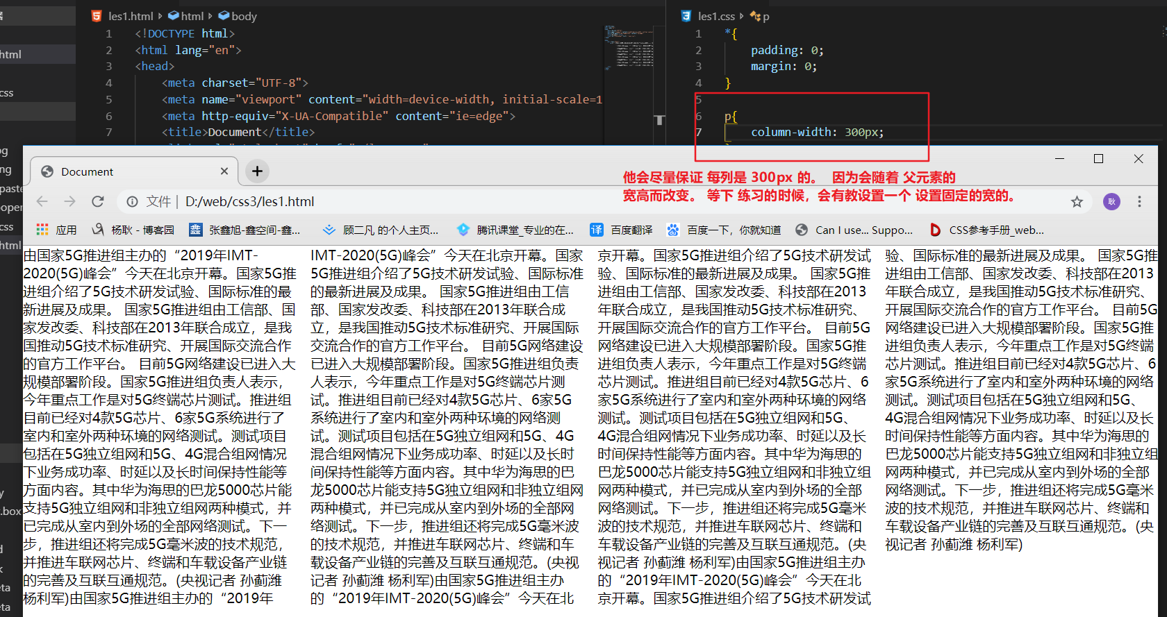 下面的例子,设置了 columns:300px 3; 也就是 成3列出现, 每列 300px,但是你仔细观察,在改变窗口大小的时候, 也并不是会一直固定的, 会随着 窗口的大小而压缩,拉伸宽度, 和列数, 跟background-repeat:round; 的效果是一样的。