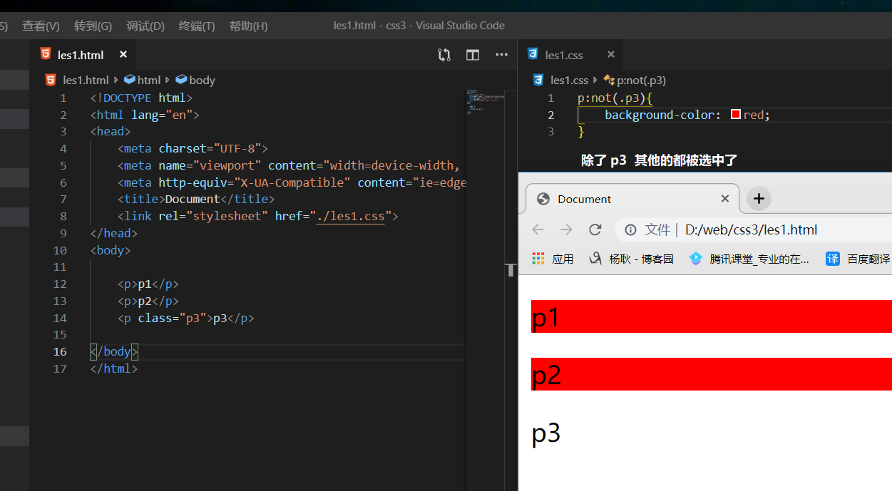 这个选择器的意思是,选中除了谁。 ()里面填条件,也就是选择器。