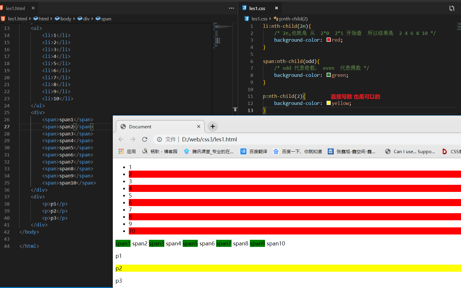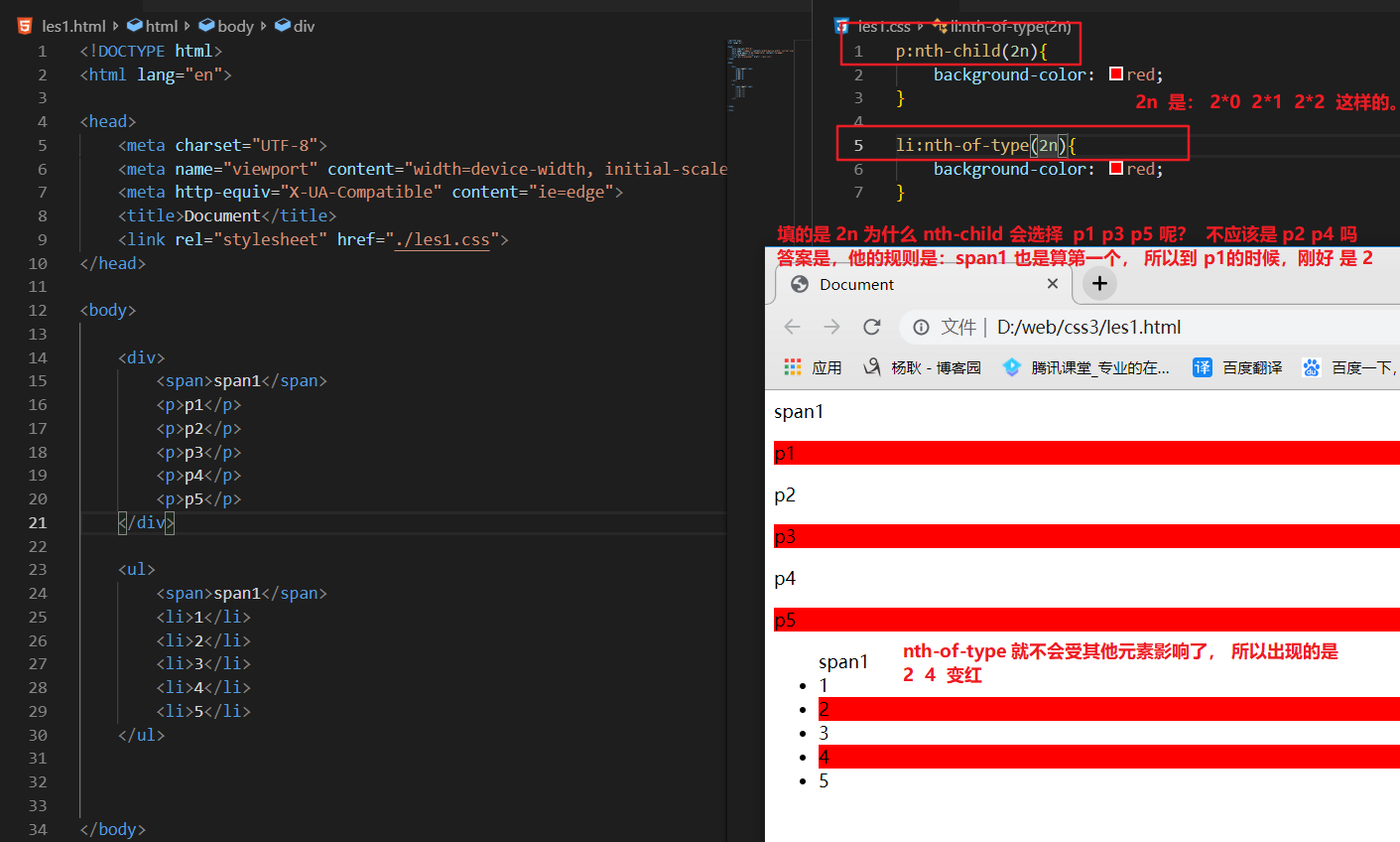 选择父元素下面的 第几个子元素,(n) 可以计算, n是从0 开始的, 但是 css里面的索引是从1 开始的, js的数组什么是从0. 但是css不是