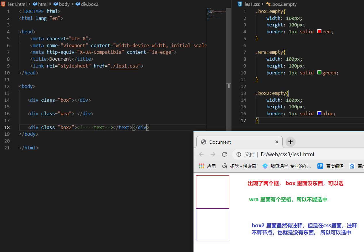 匹配里面没有任何东西的元素。也就是说,你选择的那个元素,里面不要有东西才可以选中。