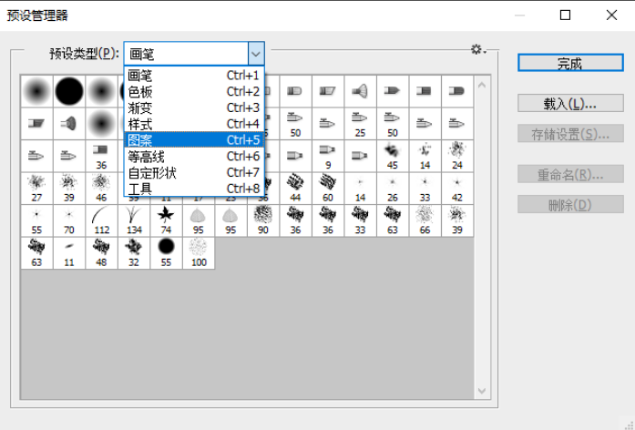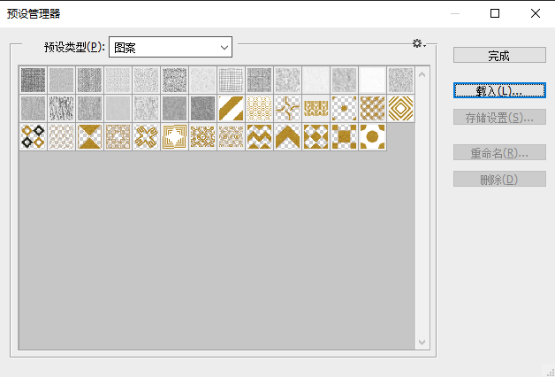 3、成功载入后如下图,拥有16个不同的填充图案,