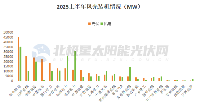 新增装机更能体现2025年上半年企业的开发侧重点,如华电新能、国电电力、华能国际、华润电力、中国核电、三峡能源、中国电建上半年光伏装机高于风电;而京能国际、龙源电力上半年新增装机的重点在风电产业。中广核新能源、云南能投、浙江新能、甘肃能源、广东建工、豫能控股及京运通,上半年风电无新增并网。