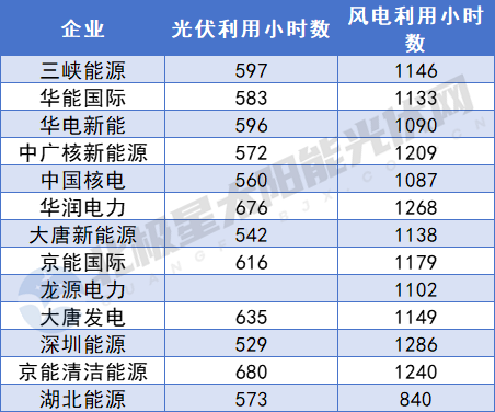 发电量方面,北极星统计的11家企业中,龙源电力、湖北能源、中国核电和大唐新能源光伏装机高于风电,但实际发电量却是风电高于光伏。核心原因在于发电利用小时数差异显著—— 所统计的13家企业中,光伏发电利用小时数几乎不足风电的一半,直接导致发电量差距拉大。