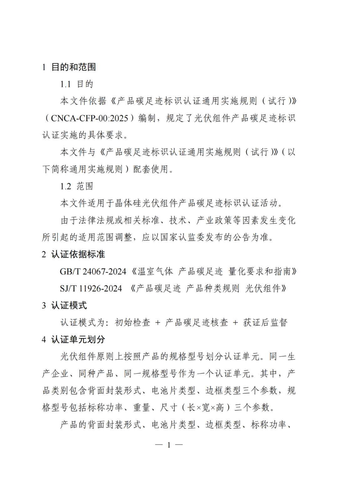 文件表示,本文件适用于晶体硅光伏组件产品碳足迹标识认证活动;认证模式为:初始检查+产品碳足迹核查+获证后监督。