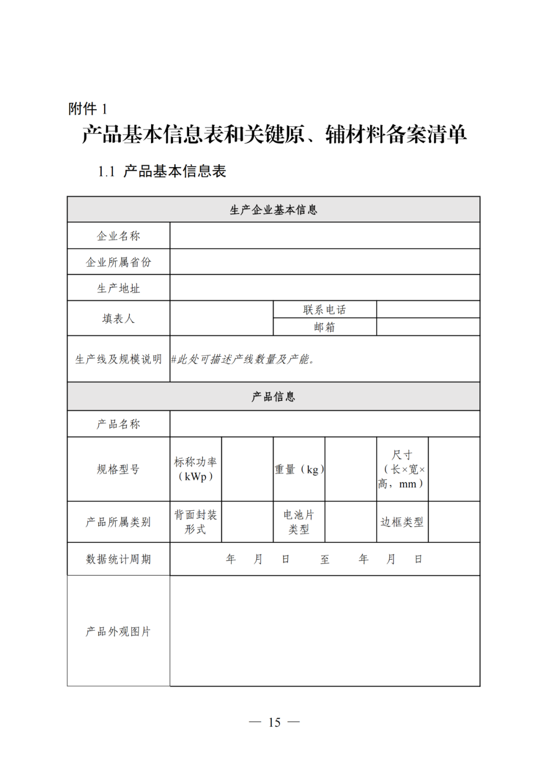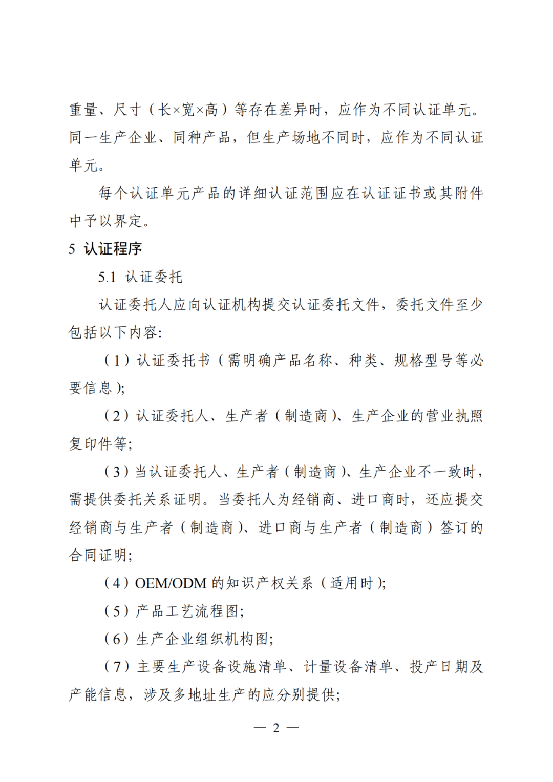 光伏组件原则上按照产品的规格型号划分认证单元。同一生产企业、同种产品、同一规格型号作为一个认证单元。其中,产品类别包含背面封装形式、电池片类型、边框类型三个参数,规格型号包括标称功率、重量、尺寸(长×宽×高)三个参数。产品的背面封装形式、电池片类型、边框类型、标称功率、重量、尺寸(长×宽×高)等存在差异时,应作为不同认证单元。同一生产企业、同种产品,但生产场地不同时,应作为不同认证单元。每个认证单元产品的详细认证范围应在认证证书或其附件中予以界定。