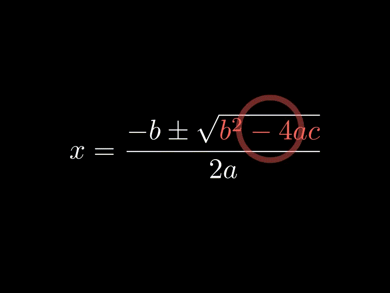 这个示例使用脉冲闪烁特效高亮公式的某个部分,先高亮$ b^2-4ac (,再高亮) 2a $。