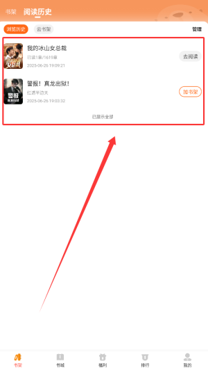 2、找到“阅读历史”选项即可查看所有已读小说记录,系统会按照阅读时间自动排序。