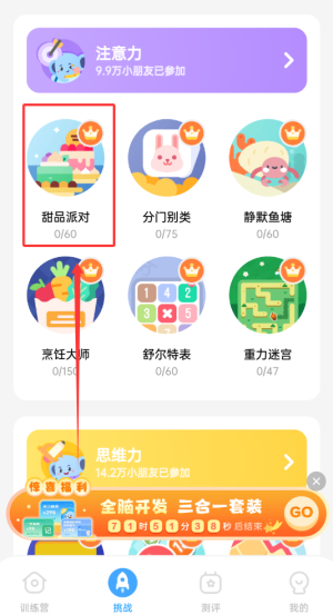在小象脑力首页找到“注意力训练”或类似功能入口并点击进入,选择适合的注意力挑战关卡(如数字追踪、图形辨别等),按照游戏规则在规定时间内完成操作,系统会根据完成情况给出评分和反馈,通过不断练习提升注意力水平。