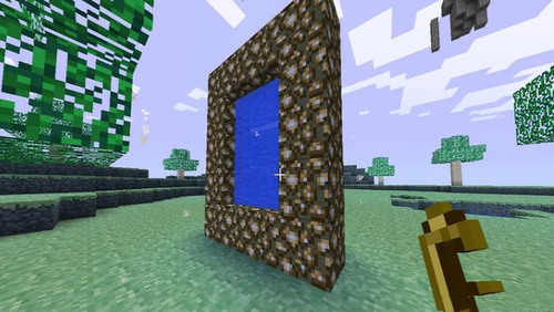 天堂传送门需要用到萤石,而放置的样式和地狱门是一样的,大概也是4X5大小。放置好后,再把水直接浇上去,天堂传送门就建好了!感觉似乎比地狱传送门要简单多啊!(其实也挺难的)