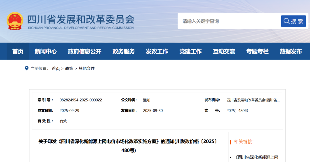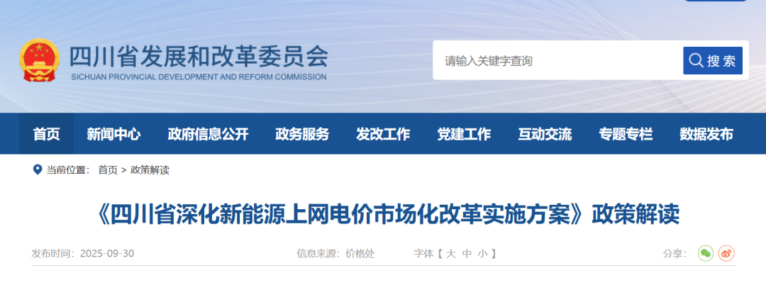 9月30日,四川省发改委印发《四川省深化新能源上网电价市场化改革实施方案》。