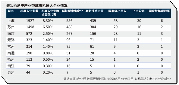 (一)全国两成机器人企业汇聚沿沪宁