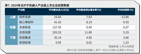 •经营状况:2024年沿沪宁机器人上市公司总体经营表现转弱,上游企业利润走低,中游企业单价高盈利少,下游企业场景明确效益佳。