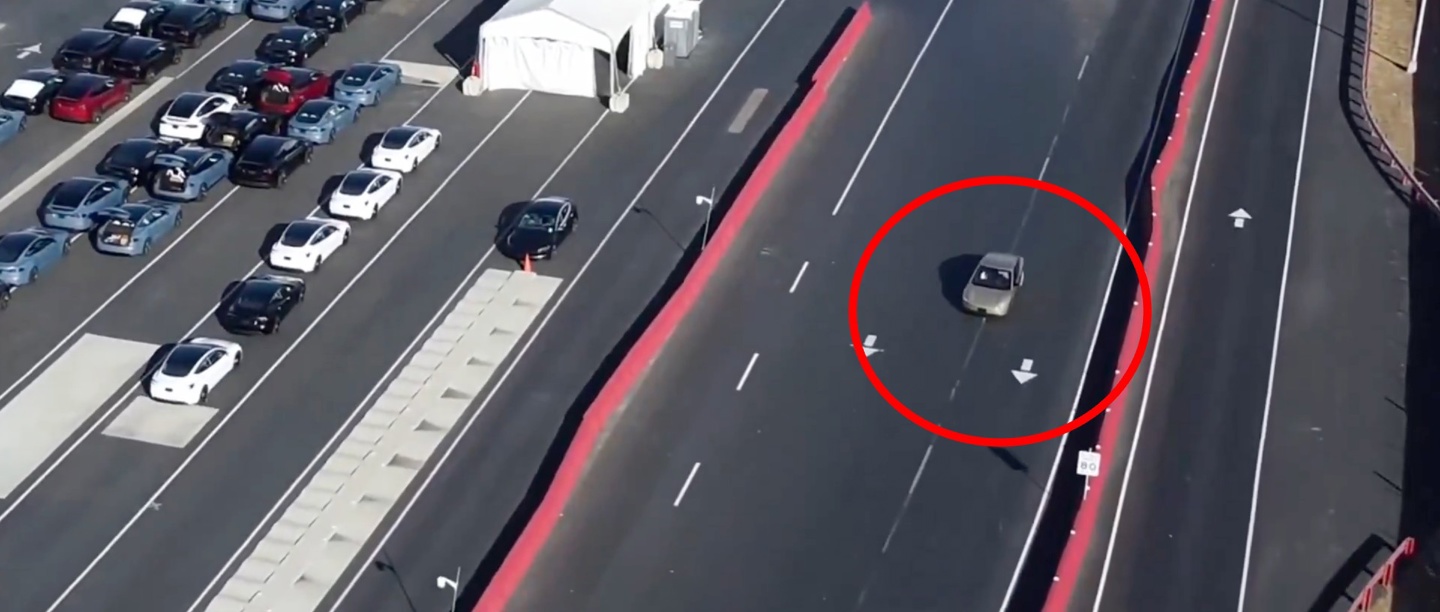 无人机航拍画面显示 Cybercab 原型车正在内部碰撞测试,表明该车已在加州弗里蒙特完成了大部分的最终工程与生产测试,目前已进入德州工厂的最后准备阶段。