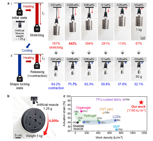 alixixi 10 月 15 日消息,韩国蔚山科学技术院(UNIST)机械工程系郑勋义(Jeong Hun-ui)教授团队成功研制出了一种“既能像橡胶般伸展,又能如钢铁般坚硬”的人工肌肉。