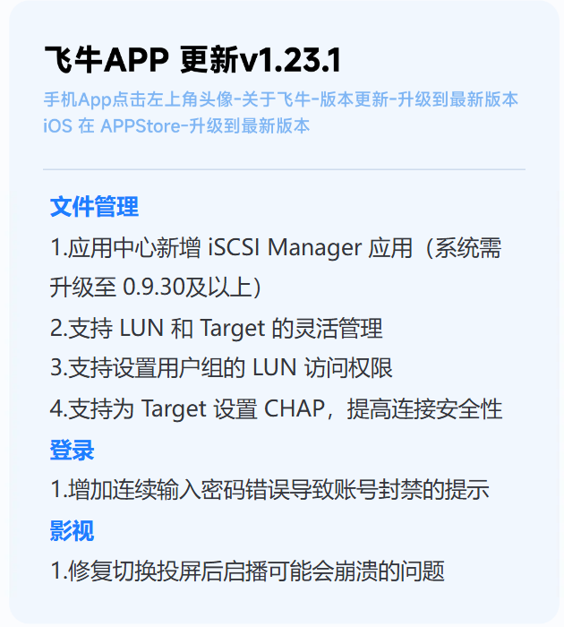 alixixi 10 月 16 日消息,飞牛 fnOS 刚刚发布更新通知,宣布全新 iSCSI 功能正式上线。