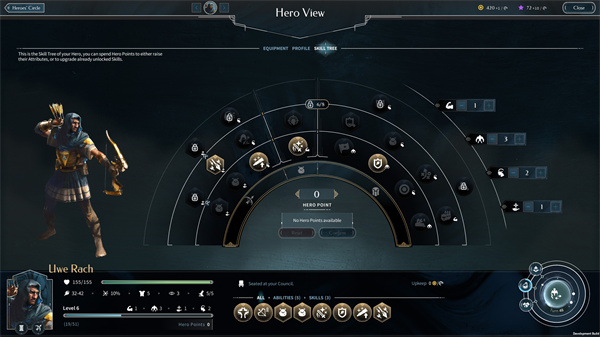 英雄的技能和能力是英雄职业所独有的,由多个技能树组成,你的英雄可以前进,分为英雄职业、派系类型和两者的混合体。在一个等级中解锁足够的技能和能力后(由技能树的三个环表示),将解锁一个新的等级,为您的英雄提供更高级的技能和能力进行自定义。