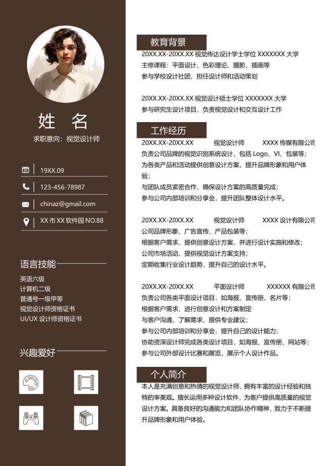 创意设计师个性作品集个人简历,适用于设计师、求职简历、个人简历、商务简历、找工作简历、竞聘简历等相关的个人简历主题设计应用。