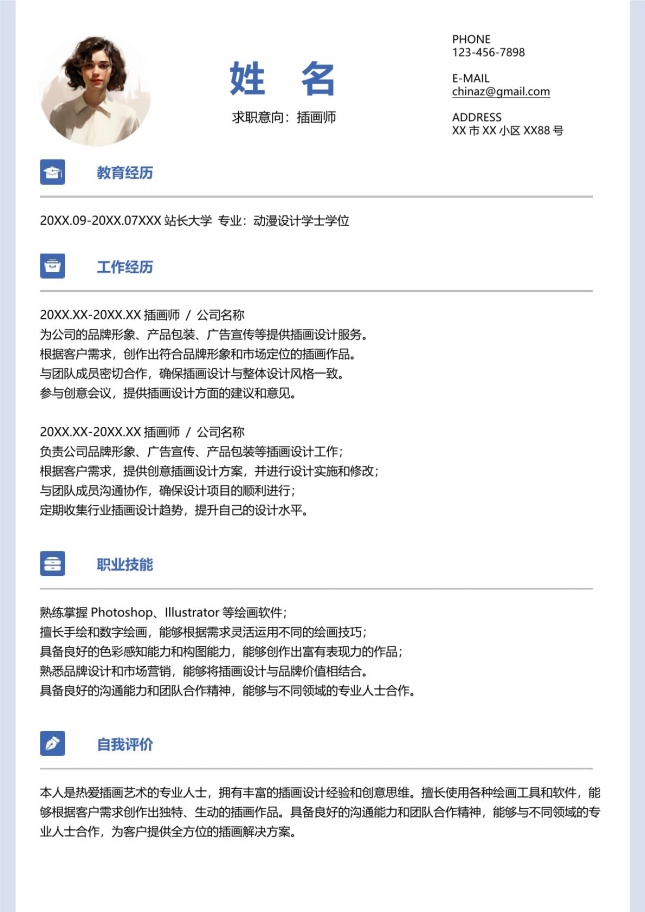 商业插画师_原创IP_潮玩设计简历模板,适用于商业插画师、通用简历、求职简历、个人简历、商务简历、找工作简历、竞聘简历等相关的个人简历主题设计应用。