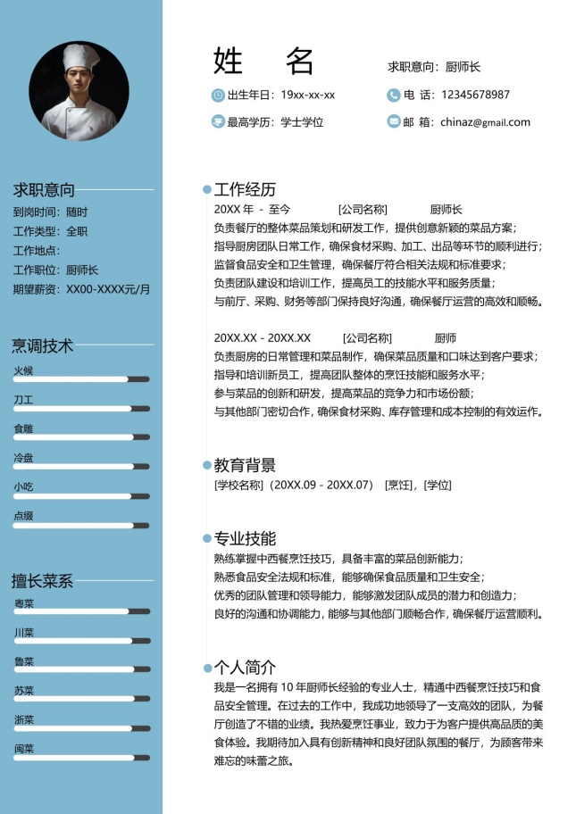 杭帮菜厨师_王师傅_杭州简历模板,适用于厨师、通用简历、求职简历、个人简历、商务简历、找工作简历、竞聘简历等相关的个人简历主题设计应用。