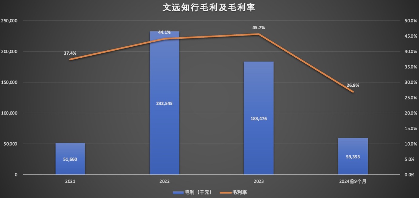 今年前三个季度,公司毛利为5935万元,同比下降44%,第三季度整体毛利为456万元,同比减少80%。毛利率方面,公司前三个季度毛利率为26.9%,与2023年45.7%的毛利率相比,下滑了18.8个百分点。