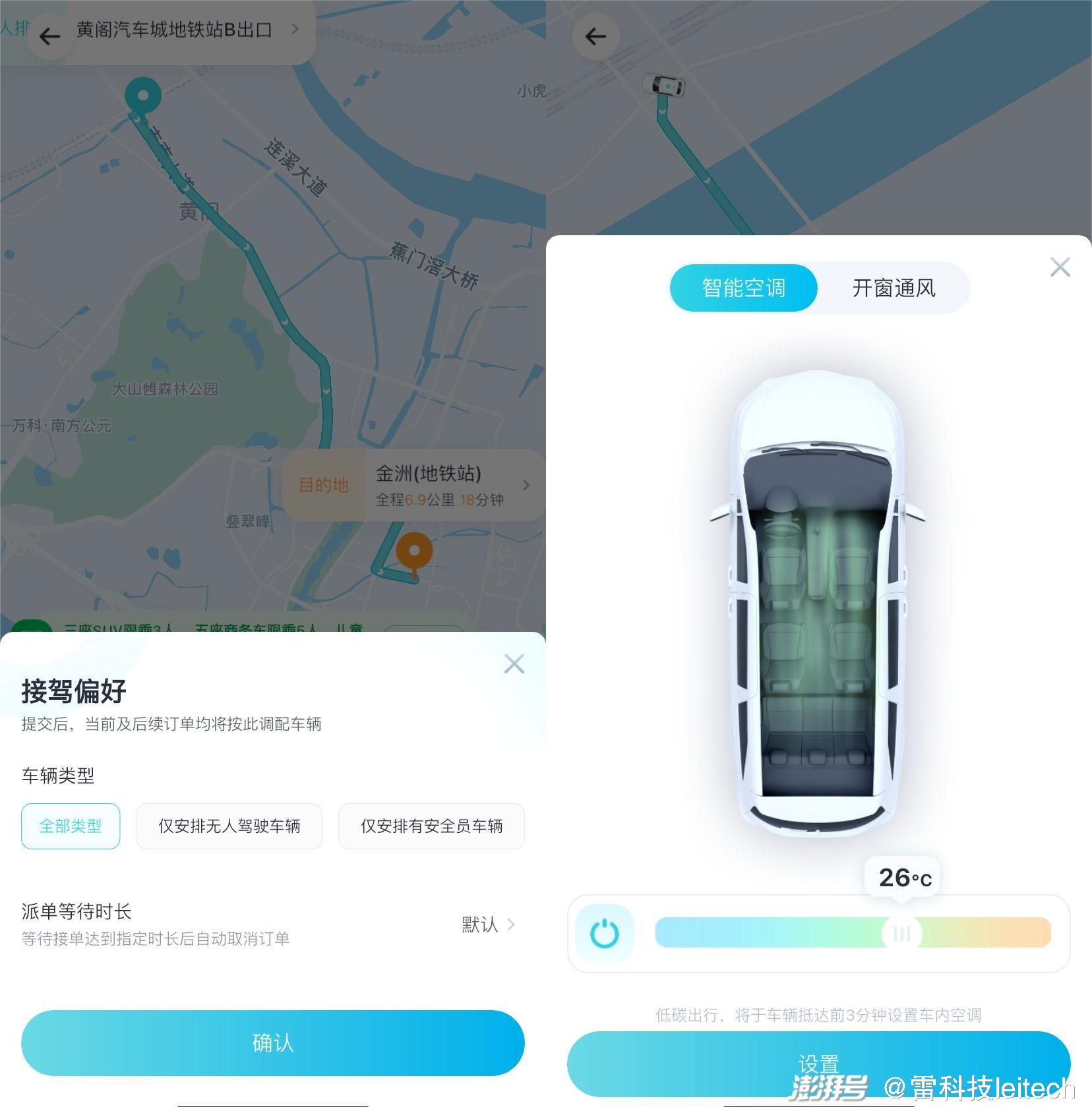 值得一提的是,在车辆到达前,乘客就能通过App对车辆进行调节空调及开窗通风的操作,这是前面两家都没能实现的。