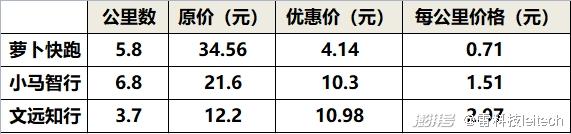 理由:萝卜快跑5.8公里4.14元的性价比断崖式第一,小马智行每公里单价低于文远知行。